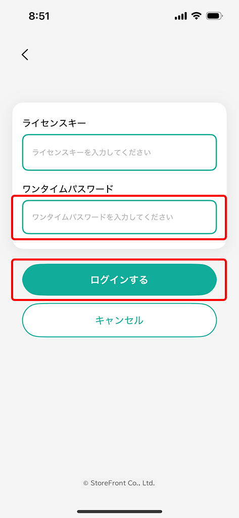 8.アプリの「ワンタイムパスワード」入力欄へ貼り付け、「ログインする」ボタンを押す
