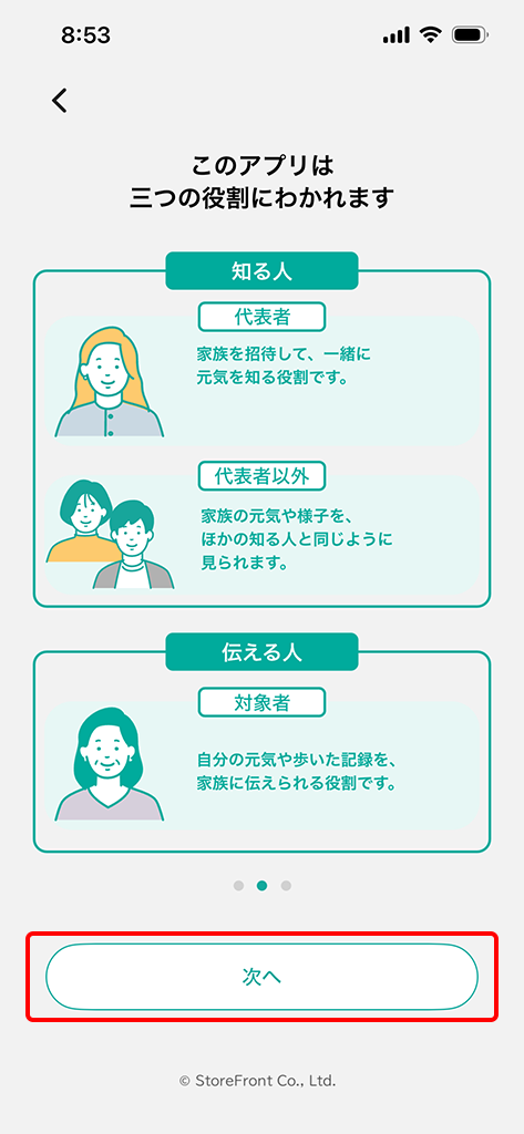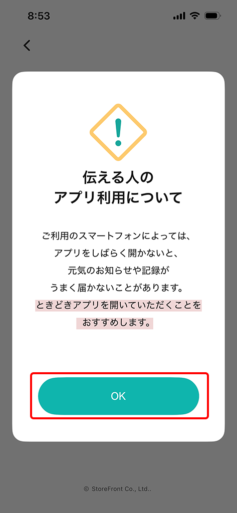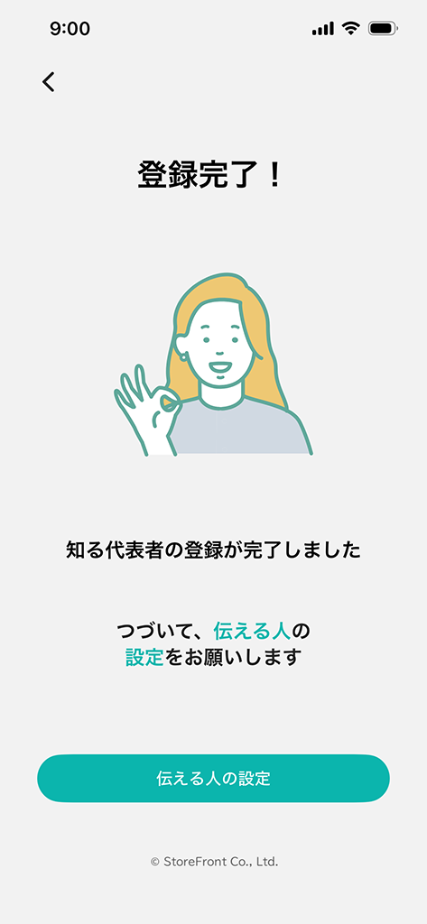 つづけて「伝える人の登録・招待」を参照いただき「伝える人」を登録してください