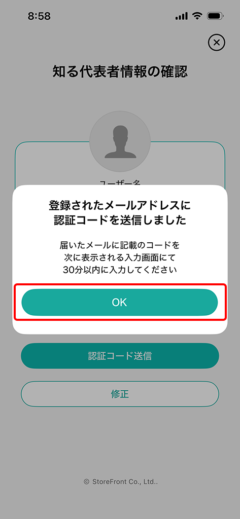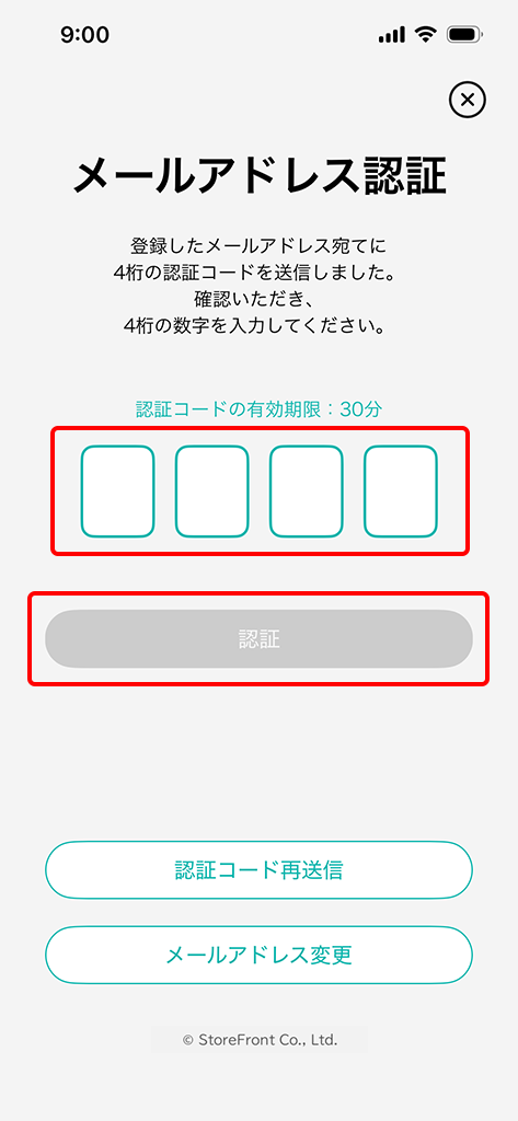 24.メールに記載されている4桁の数字を入力し「認証」ボタンを押す