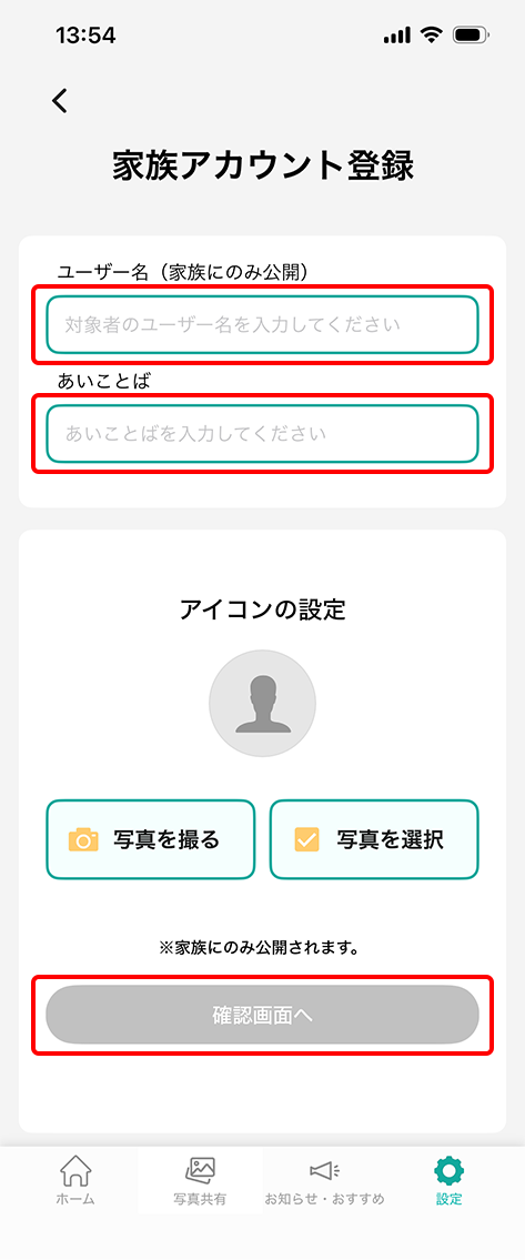 4.「ユーザー名」「あいことば」を入力し、「確認画面へ」を押す