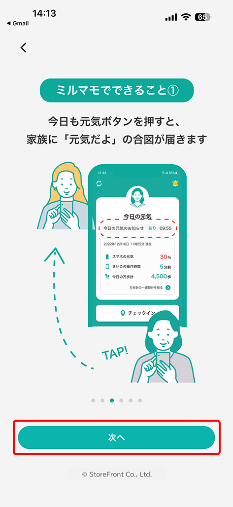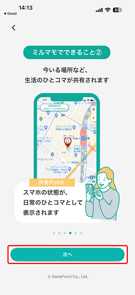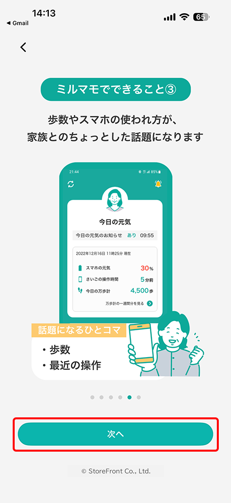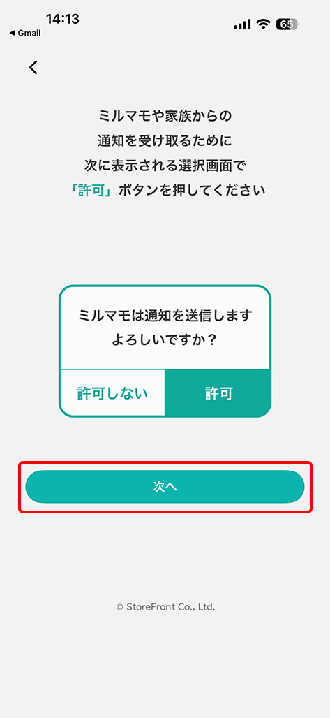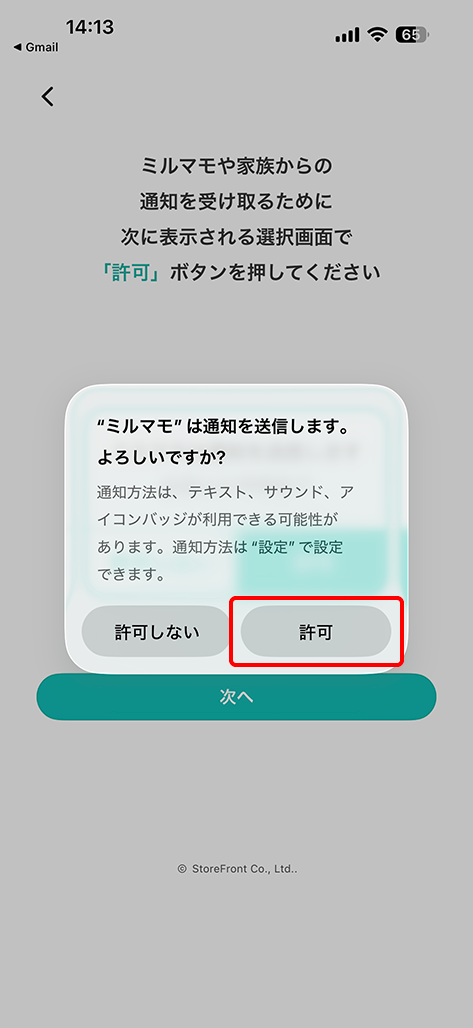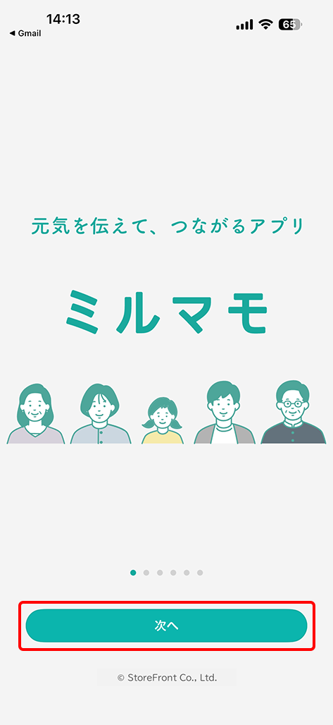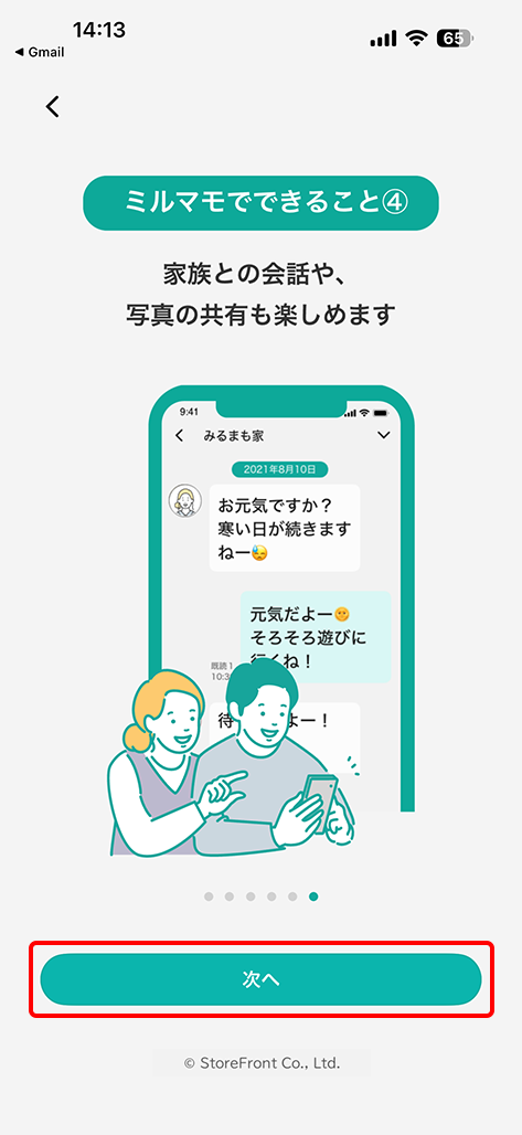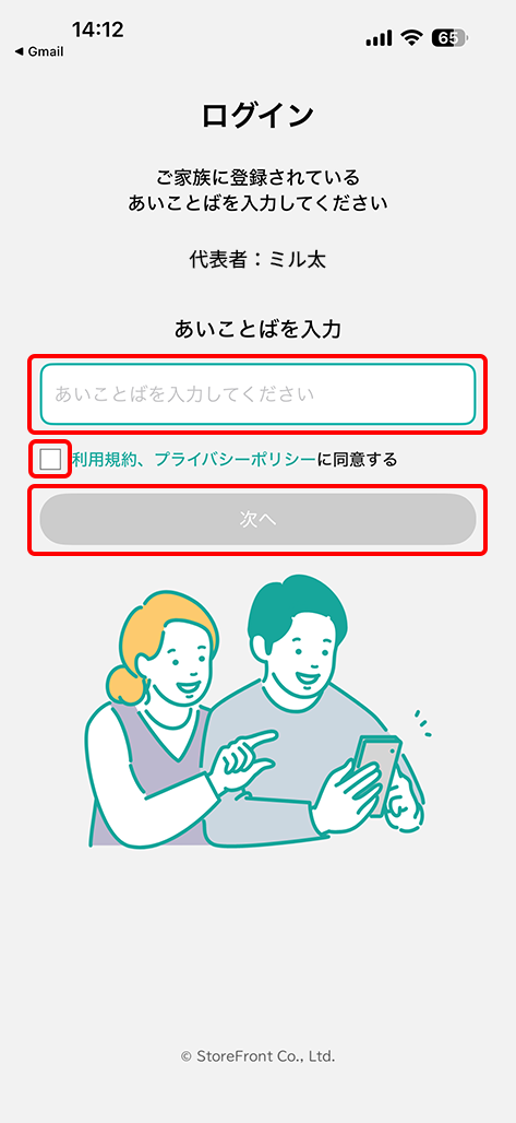 5.知る人から届いた招待メッセージ内に記載の「あいことば」を入力し、「利用規約、プライバシーポリシーに同意する」にチェックを入れ、「次へ」ボタンを押す